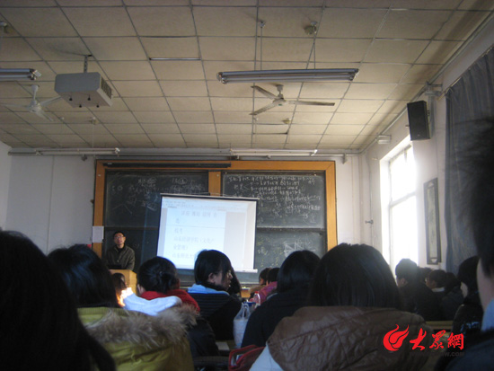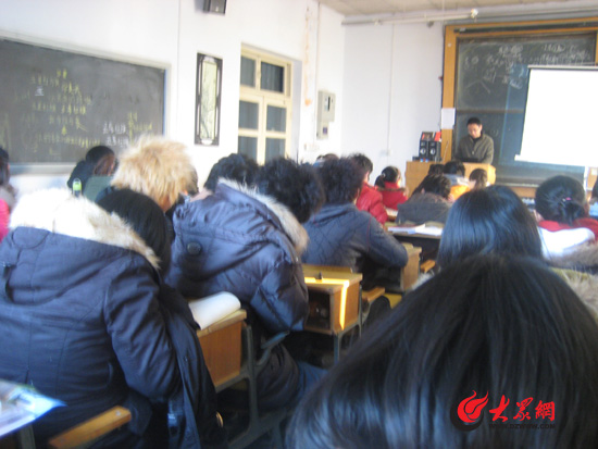 60余名學(xué)生擠在教室中聽講,并不斷有人在臺下說話。