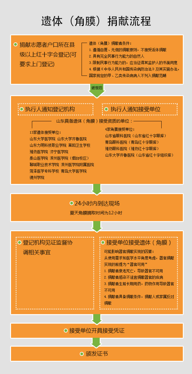 4月10日,在山東省紅十字會,大眾網(wǎng)記者采訪了山東省紅十字會遺體(角膜)捐獻工作負責人趙娜,她介紹說,很多人雖然簽訂了《山東省遺體(角膜)捐獻申請登記表》或者《中國人體器官捐獻自愿書》,但是簽字之后,感染上了一些比較嚴重的傳染疾病,過世后就可能無法捐獻,來自捐獻者本人、捐獻執(zhí)行人等的一些主觀因素也影響著捐獻的實現(xiàn)。