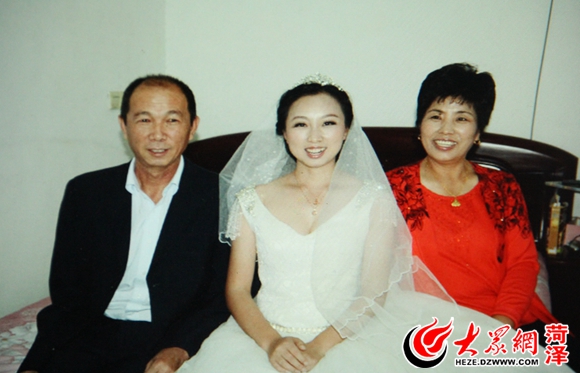 李福振的女兒李璐璐結(jié)婚時,一家三口的合影。