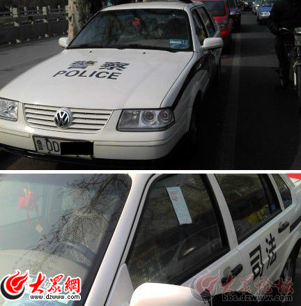 警車上的違法停車告知單(來(lái)自大眾論壇)