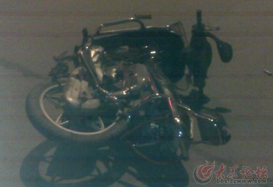 死者所騎的摩托車前車輪被撞飛(圖片源于網(wǎng)絡(luò))