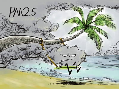 12月9日上午,在海南度假的曹女士手機(jī)中多個PM2.5監(jiān)測軟件同時報警,其中虎牙網(wǎng)、PM2.5監(jiān)測網(wǎng)等數(shù)據(jù)平臺均發(fā)布“?诮袢罩卸任廴荆ㄗh減少外出”等提示。記者隨后登錄?谑协h(huán)境保護(hù)局網(wǎng)站,網(wǎng)站顯示已連續(xù)兩日達(dá)到輕度污染。“天氣優(yōu)等生”也現(xiàn)空氣污染,這是給我們提示,霧霾來襲,沒有人例外,也沒有地方可置身事外。漫畫/勾犇