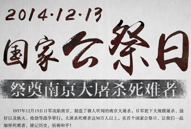 一個(gè)國家和他的人民唯有在內(nèi)心深處放不下那些沉重的記憶,前進(jìn)的腳步才不會(huì)那么輕佻。2014年12月13日,我們舉國祭奠,為歷史,為當(dāng)下,更為未來。