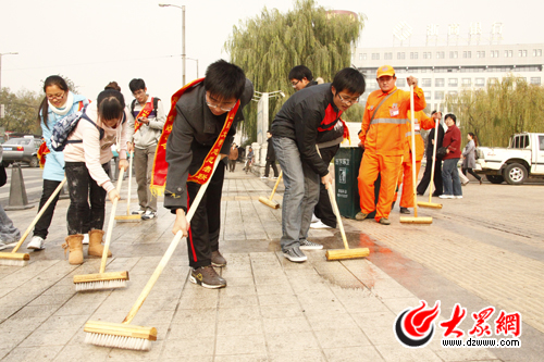 少先隊員們打掃泉城廣場的行動感染了廣場上的市民,他們紛紛加入到掃除的隊伍中來,隊伍很快由幾百人壯大到了2000多人,他們在廣場上清洗路面、揀拾垃圾,教育引導(dǎo)小商小販、維持廣場秩序。