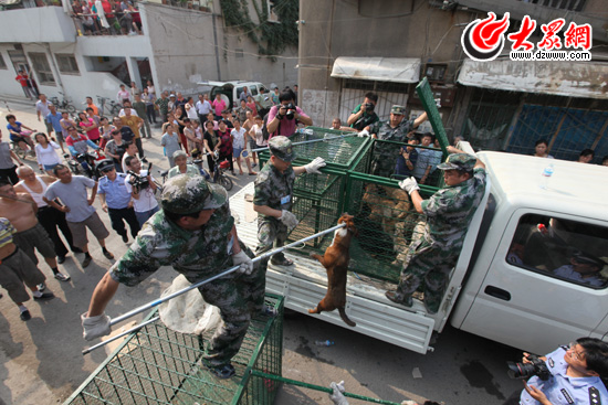 曹亮 趙洪棟 李潤杰 來源: 大眾網(wǎng)[提要] 在天橋區(qū)勝利莊某小區(qū),違規(guī)養(yǎng)犬兩年多的“釘子戶”被查處,稽查隊耗用兩個多小時的時間才將21只無證犬只全部收繳,轄區(qū)周圍市民拍手叫好。