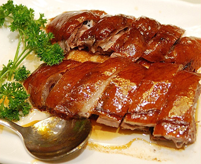 It is usually cooked in a 6-foot-high drum-shaped oven, which is much larger than a conventional commercial oven and can roast up to 24 ducks and four suckling pigs at a time.