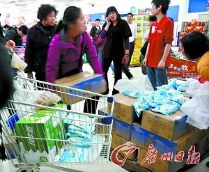 在香港,由于市民擔心日本產(chǎn)品缺貨及新貨會受輻射污染,連日來部分昂貴的日本食品涌現(xiàn)“搶購潮”,有海味店兩小時內(nèi)火速售出逾35萬元港幣、合共40斤的日本鮑魚,也有市民晨早排隊買日本奶粉,令供應進一步緊張。(記者文遠竹綜合報道)