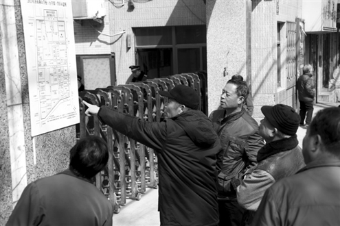 在濟(jì)南燕山學(xué)校小學(xué)部門前,眾多家長(zhǎng)在圍觀學(xué)區(qū)示意圖(資料片)記者 王曉峰 攝