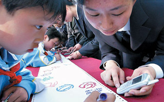 “激情亞足時時精彩,你我共筑青春風(fēng)景……”這是濟南市解放 路第二小學(xué)的師生為亞足賽原創(chuàng)的短信中的一條。亞足賽臨近,該校 師生開動腦筋一起創(chuàng)作條條“文明短信”,發(fā)給老師、家長和朋友, 做一回文明使者! 本報記者 劉軍 報道