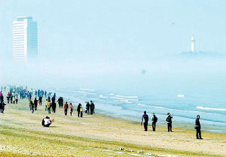 據(jù)介紹,在煙臺市區(qū)海岸出現(xiàn)“海市”奇觀尚屬首次。估計是近來氣溫回升,市區(qū)空氣稀薄,而異地景物被陽光折射后,恰好造成適宜的角度,又經(jīng)不同密度空氣層傳遞折射所致。  (煙晚)