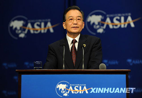 4月18日,國務(wù)院總理溫家寶在博鰲亞洲論壇2009年年會開幕式上發(fā)表主旨演講。新華社記者 馬占成 攝