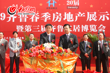 大眾報(bào)業(yè)集團(tuán)副總編輯郝克遠(yuǎn)、齊魯晚報(bào)·生活日?qǐng)?bào)社長(zhǎng)梁洪文為房展揭幕。