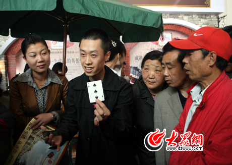 你有美女助陣,我有魔術(shù)師表演。隨著魔術(shù)類(lèi)的節(jié)目在各大電視臺(tái)熱播,魔術(shù)表演也越來(lái)越受到市民的喜歡,這不,一個(gè)樓盤(pán)就請(qǐng)到了魔術(shù)師現(xiàn)場(chǎng)進(jìn)行表演。魔術(shù)師嫻熟的撲克牌絕技,博得了在場(chǎng)市民的陣陣喝彩。
