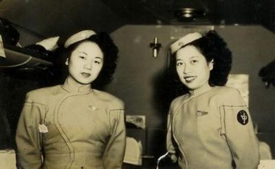 1929年,由美國寇蒂斯·賴特飛機(jī)公司與中國國民政府合作,成立了民國第一個家民航公司——中國航空公司(簡稱中航),但那時的飛機(jī)上還沒有空姐。(圖:1947年9月,中國航空公司第一空勤組的兩名空姐。)