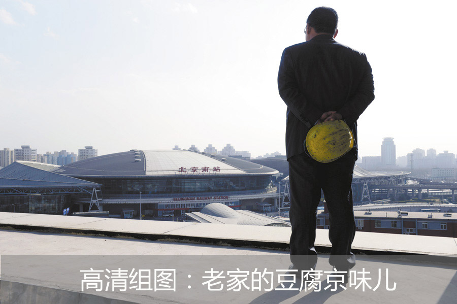 新開的餐廳工地大樓正對著北京南站,這里也是他每次回鄉(xiāng)的起點(diǎn),站在這里總會勾起孫懷兵對家鄉(xiāng)的思念。