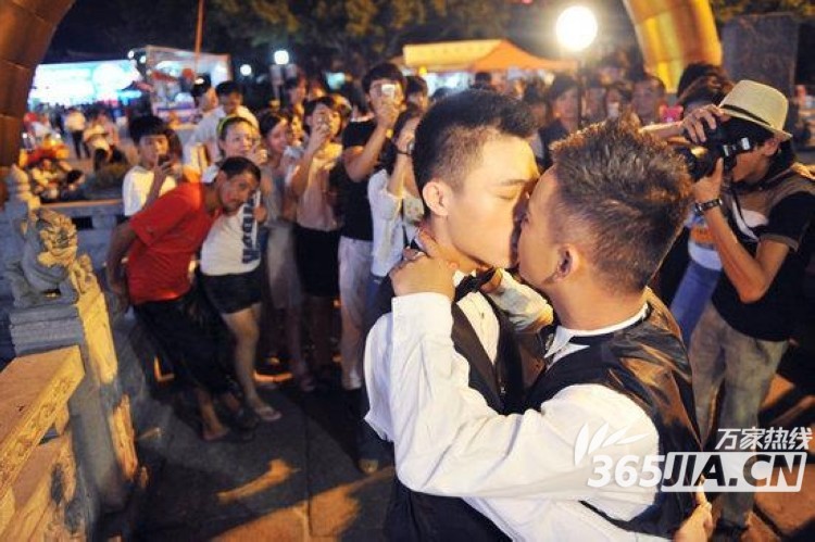 福建泉州首對男同公開結(jié)婚,當街拍婚紗照并激吻。13日中午,泉州關(guān)帝廟附近的一影樓非常熱鬧,一對同志(男同性戀者)正在拍婚紗照。他們是福建首對公開結(jié)婚的同志——24歲的陸忠和20歲的劉萬強。十一期間,他們將在寧德老家舉辦婚禮。