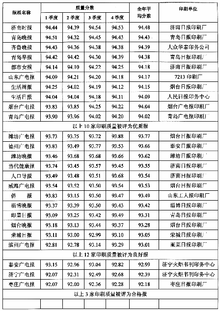 2002年度彩色報紙印刷質(zhì)量匯總表