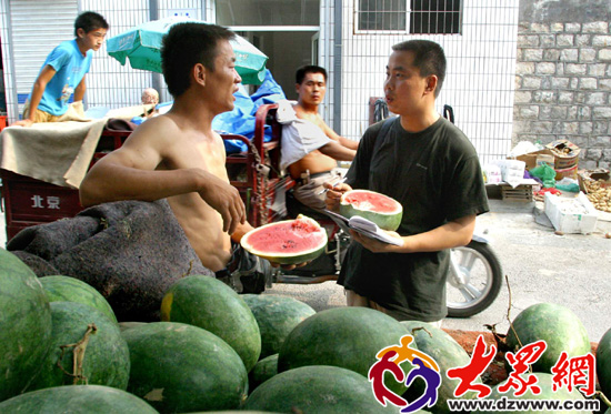 在酷暑天采訪瓜農(nóng)。(徐延春 攝)