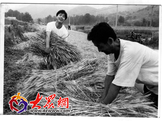1999年在齊魯晚報實習(xí)的時候,在濟(jì)南近郊體驗收麥子。(徐延春 攝)