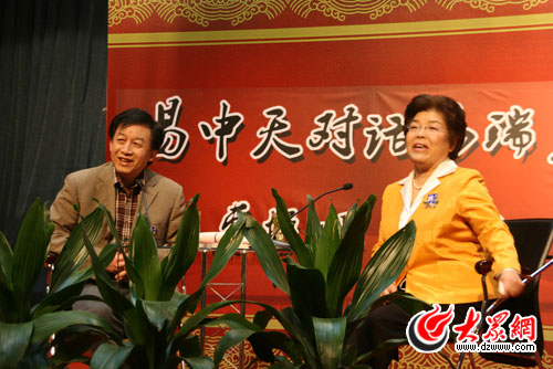大眾網(wǎng)濟(jì)南4月24日訊(記者 吳哲 劉寶才 )是大學(xué)教授,是《百家講壇》出身且一夜成名的學(xué)術(shù)“超男”和“超女”,易中天和馬瑞芳不止一次進(jìn)行過(guò)交流,但是在山東,在山東大學(xué)還是第一次。今天下午,作為書(shū)博會(huì)的開(kāi)幕序曲,兩大學(xué)術(shù)名家在山東大學(xué)科學(xué)會(huì)堂,面對(duì)幾千名大學(xué)生品“三國(guó)”、談“紅樓”。在近兩個(gè)小時(shí)的“論戰(zhàn)”中,兩人像說(shuō)對(duì)口相聲一樣,你一句我一句,獨(dú)到的見(jiàn)解引得臺(tái)下大學(xué)生如癡如醉。