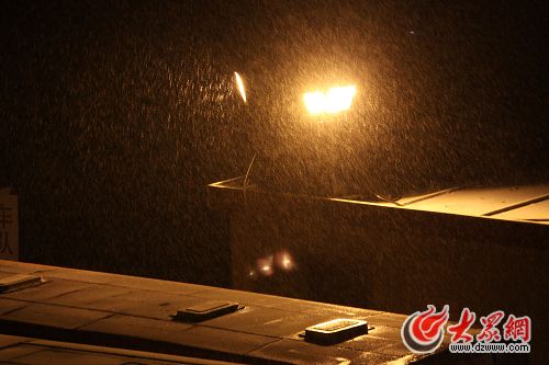 下雪了 久候的雪花終于從濟(jì)南的夜空中飄落