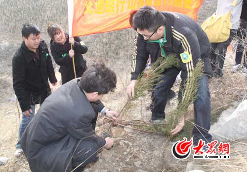 早晨七點半不到,已經有近百名大眾網網友相約來到山東新聞大廈,等待共同乘車前往臘山植樹。他們分別是來自交通銀行山東分行、工商銀行山東分行營業(yè)部、安利(中國)山東分公司、山東中齊房地產開發(fā)有限公司和濟南德輝進口大眾4S店的職工以及山東各大高校學生和社會愛心市民,他們都想通過實際行動來踐行環(huán)保義務。