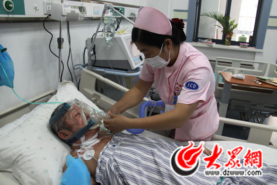 護(hù)士長(zhǎng)為鄭老戴上呼吸器