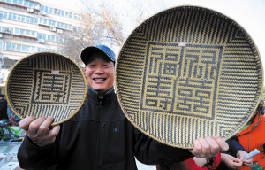 “這是我們老家編的簸籮,全部是手工的,掛在墻上是裝飾品,放東西就是用具,很實(shí)用!”昨天,一位操著南方口音的攤主引來(lái)很多人的關(guān)注。這位攤主姓歐,歐先生老家是貴州的,在濟(jì)南做生意,帶來(lái)了貴州苗族的三大件,朱砂飾品、竹編簸籮和妹妹自己做的拖鞋。