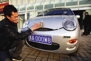 13日下午3點(diǎn),首輛電動汽車的車主鄧先生來到車管所辦理審車、上牌照的業(yè)務(wù)。由于是首輛電動汽車,需要進(jìn)行新車掛牌拍照、拓印車架號等,到下午5點(diǎn)下班,鄧先生沒能如愿掛上牌照。昨天一大早,鄧先生再次來到濟(jì)南市車管所,進(jìn)行新車掛牌拍照。魯A000W8!鄧先生選到了自己滿意的車牌,而濟(jì)南第一輛電動汽車也終于有了合法上路的憑證。