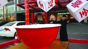 濟(jì)南一酒店兩米大碗?yún)⒃u賀年會(huì)“之最”。 喬顯佳 攝