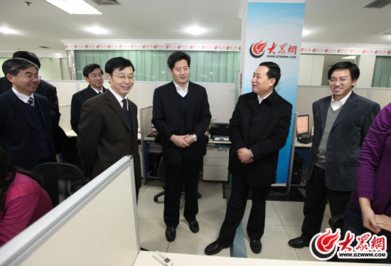 大眾網(wǎng)1月31日訊(記者 馮煒程)31日上午,山東省委常委、宣傳部長(zhǎng)孫守剛在常務(wù)副部長(zhǎng)姜鐵軍,副部長(zhǎng)徐向紅,副巡視員王世農(nóng)等省委宣傳部領(lǐng)導(dǎo)以及大眾報(bào)業(yè)集團(tuán)黨委書記、董事長(zhǎng)、總編輯傅紹萬,大眾報(bào)業(yè)集團(tuán)社長(zhǎng)、黨委副書記許衍剛,大眾報(bào)業(yè)集團(tuán)黨委副書記、副總編輯李壯利,大眾報(bào)業(yè)集團(tuán)黨委常委、副總編輯魏武,趙念民,郝克遠(yuǎn)等領(lǐng)導(dǎo)陪同下,來到大眾網(wǎng)檢查指導(dǎo)工作,看望慰問網(wǎng)站工作人員,并通過大眾網(wǎng)向廣大網(wǎng)友拜年。