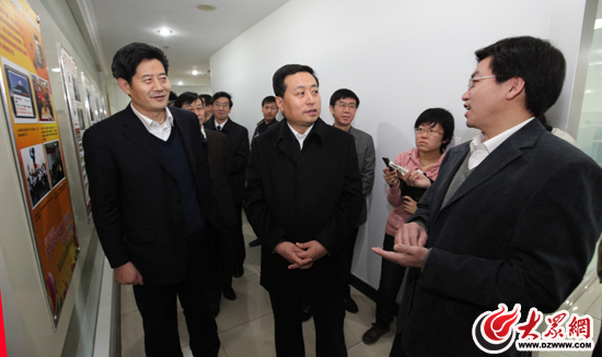 省委常委、宣傳部長(zhǎng)孫守剛參觀大眾網(wǎng)宣傳欄、文化墻,詳細(xì)了解了大眾網(wǎng)組織架構(gòu)。大眾網(wǎng)董事長(zhǎng)、總經(jīng)理林忠禮,大眾網(wǎng)總編輯朱德泉介紹了有關(guān)情況。(記者 曹亮 攝)