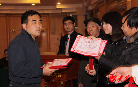 大眾網(wǎng)副總編輯姜長勇為二等獎(jiǎng)獲得者頒獎(jiǎng)。