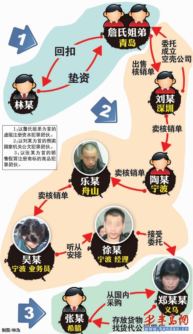 但是詹某卻并不知道這一批假LV包。詹某供述,她在這家公司當業(yè)務員的同時,和自己的弟弟還開了一家公司,也是從事與公司相關的代理業(yè)務,2010年3月,她在網(wǎng)上受一名叫“吳生”的人委托 ,以找林某墊資的方式,成立了8家空殼公司,騙領出口核銷單后通過快遞寄給“吳生”,“吳生”每月付給她相應的領單費用。而這批假貨所用的核銷單,正是出自這8家公司騙領的核銷單中的一張。很快,這個以詹氏姐弟為首的虛報注冊資本犯罪團伙被一網(wǎng)打盡。