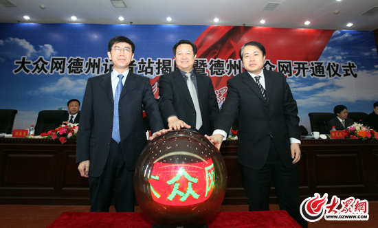 劉保聚、劉致福和郝克遠共同按下水晶球開通德州大眾網(wǎng),吳翠云和傅紹萬為大眾網(wǎng)德州記者站揭牌。