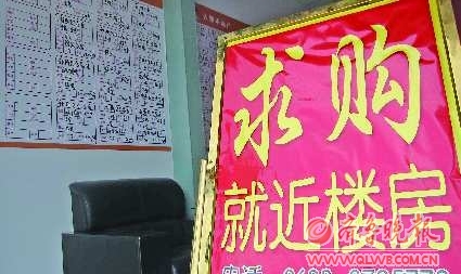 由于新市區(qū)租房客增多,一家房屋中介打出了求購就近樓房的牌子。