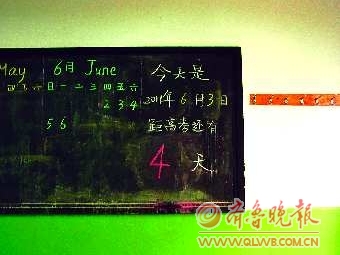 在一間高三教室里,正在打掃衛(wèi)生的王一凡指著天花板中央、日光燈上掛著的大鉛筆告訴記者:“這是高三的老師一起去爬泰山的時(shí)候買的,每個(gè)班都有一個(gè),是為大家高考祈福的,是鎮(zhèn)班之寶!甭劼牬搜裕诮淌液竺娌梁诎宓膭罨仡^正好看到記者的鏡頭,立即笑嘻嘻地沖著相機(jī)豎起了“V”字手勢(shì),還不忘央求記者幫他和其他同學(xué)合影。