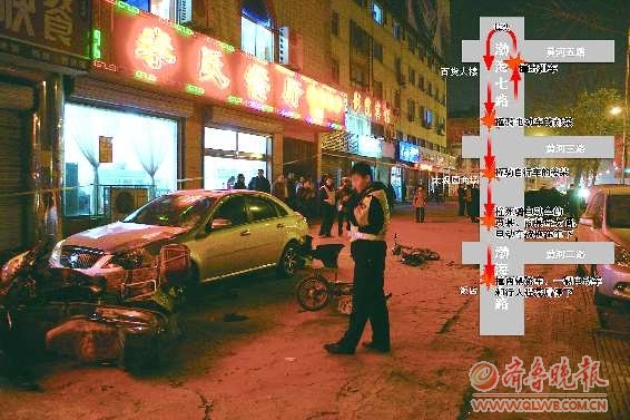 2010年11月28日晚,肇事車連續(xù)多次碰撞后,在一家飯店門口停下。 (本報(bào)資料片)