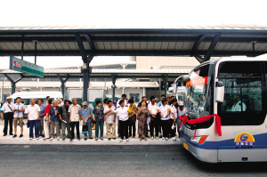 昨天上午11點(diǎn)多,兩輛身披紅綢的新能源豪華空調(diào)公交車離開身后的“大隊(duì)伍”,在濟(jì)南西站西廣場(chǎng)緩緩起步。在京滬高鐵正式通車的前一天,經(jīng)過(guò)前期各項(xiàng)精心準(zhǔn)備,濟(jì)南公交K156、K157兩條公交線正式開線了。這兩條線路的票價(jià)均為2元,IC卡九折,不使用月票。通訊員 趙東云 記者 王曉峰 張夢(mèng)堯 攝影報(bào)道