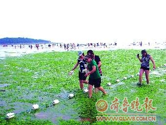 孟艷 張杰 陳海芹 來源:齊魯晚報(bào)[提要] 近日,大面積滸苔不斷逼近島城前海一線,7日第一海水浴場今年首次發(fā)現(xiàn)大面積滸苔。