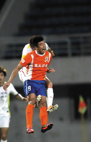 韓鵬用一記漂亮的倒掛金鉤 74球成中超射手王