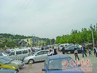 在月亮灣景區(qū)入口處,約300個停車位已經(jīng)停得滿滿當(dāng)當(dāng)。門口外不遠(yuǎn)處的一片空地上,也停滿了車輛。在月亮灣都市莊園內(nèi),一處高爾夫球場被辟為臨時停車點,可同時供200輛車停放。