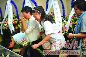 “來(lái)送送他吧,他年齡跟我孫子一般大,想不出他母親該有多難受!”2日下午2時(shí)30分,白發(fā)蒼蒼的廣州市民孫女士在孫子攙扶下踏上一級(jí)又一級(jí)臺(tái)階,來(lái)到廣州殯儀館白云廳前。追悼會(huì)定于下午3時(shí)舉行,2時(shí)30分左右,廣州市民就不斷從各個(gè)方向趕來(lái),送英雄最后一程。3時(shí),一群群趕來(lái)送別的人已站滿(mǎn)可容納千余人的大廳。告別廳最前端,鮮花簇?fù)碇Ч桌镉⑿鄣倪z體,兩側(cè)臺(tái)柱上掛著巨大的挽聯(lián):“舍身取義見(jiàn)義勇為萬(wàn)眾頌人杰,忠孝仗義身體力行七尺好男兒。”