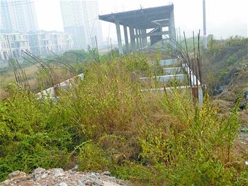 大坑和廢棄的少量構(gòu)筑物,表明盛景家園曾一度“動(dòng)工”。