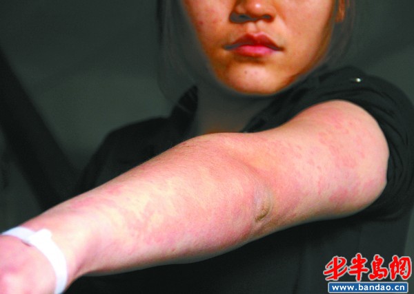 在醫(yī)院打針開藥后,閆女士的癥狀并未明顯好轉(zhuǎn),23日和24日,婚紗店一名穆(音)姓店長兩次帶閆女士到青醫(yī)附院黃島分院皮膚科就診,找到兩位大夫給閆女士“把脈”,遺憾的是,閆女士的過敏癥狀依然明顯,過敏原因仍然難以確定。