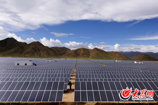 在日喀則經(jīng)濟(jì)技術(shù)開(kāi)發(fā)區(qū)一處空曠區(qū)域,52668面太陽(yáng)能電池板整齊排列,把燦爛陽(yáng)光轉(zhuǎn)化為源源不斷的電能,送入藏族百姓家。今年7月6日,一期總投資2.49億元的10兆瓦力諾太陽(yáng)能光伏電站項(xiàng)目在日喀則經(jīng)濟(jì)技術(shù)開(kāi)發(fā)區(qū)并網(wǎng)發(fā)電,這是山東歷史上第一個(gè)投資超億元的援藏項(xiàng)目,年發(fā)電量2023萬(wàn)千瓦時(shí),可滿足10萬(wàn)余戶農(nóng)牧民家庭全年的生活用電。在施工中,力諾集團(tuán)首次應(yīng)用世界最先進(jìn)的螺旋樁技術(shù),有效穿過(guò)地下凍土層,完成太陽(yáng)能電池板的架設(shè)、固定。