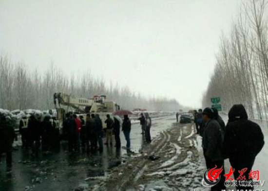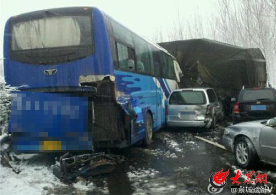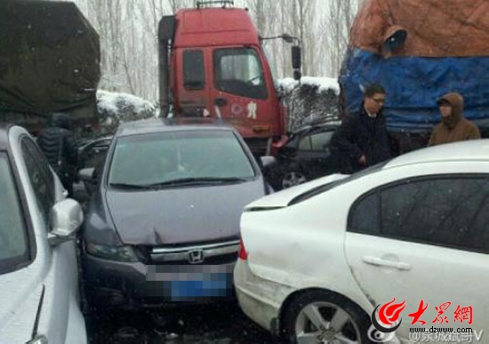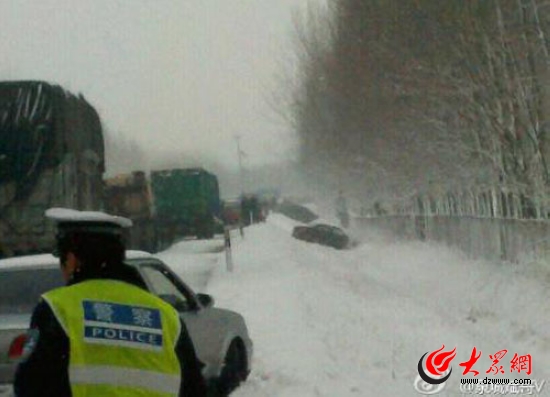 濟青高速濰坊段大雪致數(shù)十輛車連環(huán)相撞
