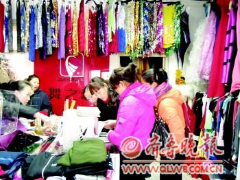 ◤8日下午,有不少顧客在歷山路、文化東路交叉口的一家舞美用品公司挑選公司晚會(huì)演出服裝、道具!∮浾摺∫髞嗛z