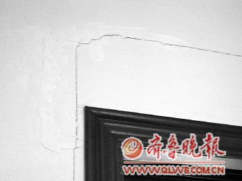 住14號(hào)樓1單元的史女士告訴記者,上周六,她剛從客廳走進(jìn)廚房,就聽(tīng)到“轟”的一聲響,緊接著客廳就傳來(lái)“砰”的一聲。她趕緊出來(lái)一看,原來(lái)自己家屋頂上掛著的吊燈蓋掉了下來(lái),摔在了客廳中間擺放著的茶幾上。不僅燈蓋掉了下來(lái),史女士家的墻也出現(xiàn)了裂紋!