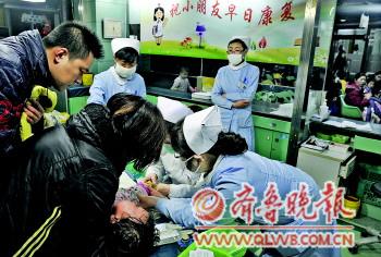 3月1日,濟南市中心醫(yī)院護士在為患兒打針。本報記者郭建政攝